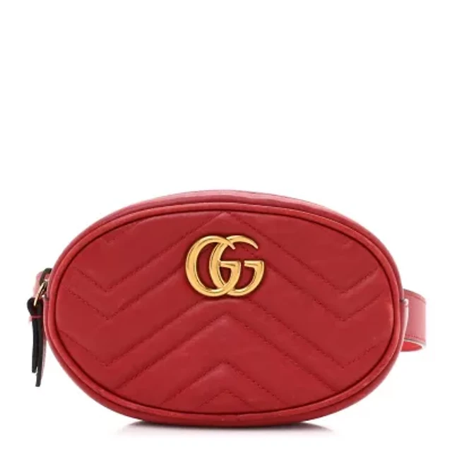 Gucci Calfskin Matelasse GG Marmont Belt Bag 85 34 Hibiscus Red -FINAL SALE NO RETURNS