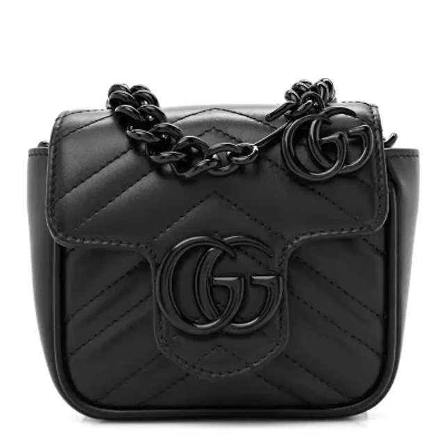Gucci Calfskin Matelasse Monochrome GG Marmont Chain Mini Belt Bag Black -FINAL SALE NO RETURNS