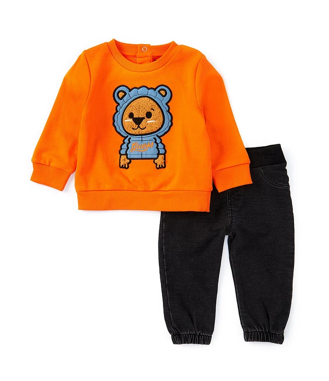Guess Baby Boys Newborn-24 Months Long-Sleeve Bear French Terry Sweatshirt & Denim-Look Knit Pant Set
