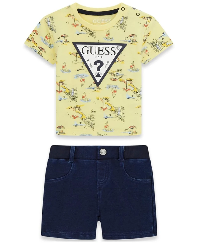 Guess Baby Boys' Short-Sleeve T-Shirt and Knit Denim Shorts Set, 2-Piece Set