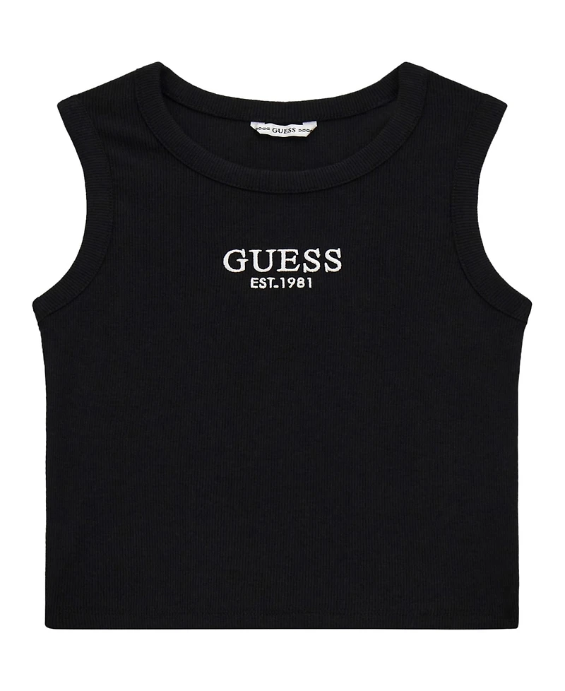 This tank top is an amazing addition to their closet. Featuring an embroidered Guess logo at the chest. Made in a soft rib knit fabrication. This sleeveless top will easily become their favorite piece.