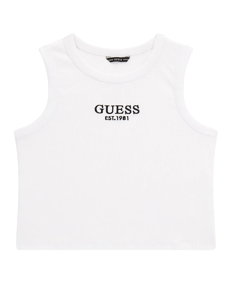 This tank top is an amazing addition to their closet. Featuring an embroidered Guess logo at the chest. Made in a soft rib knit fabrication. This sleeveless top will easily become their favorite piece.