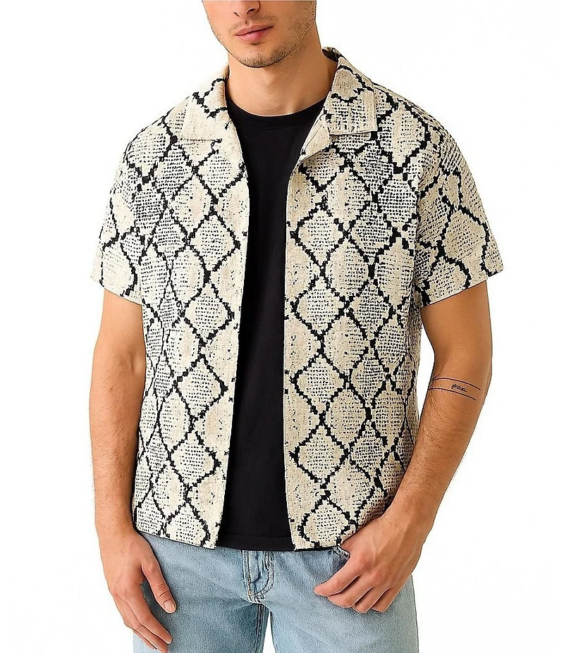Guess Carter Snakeskin/Geometric Patterned Short Sleeve Woven Shirt