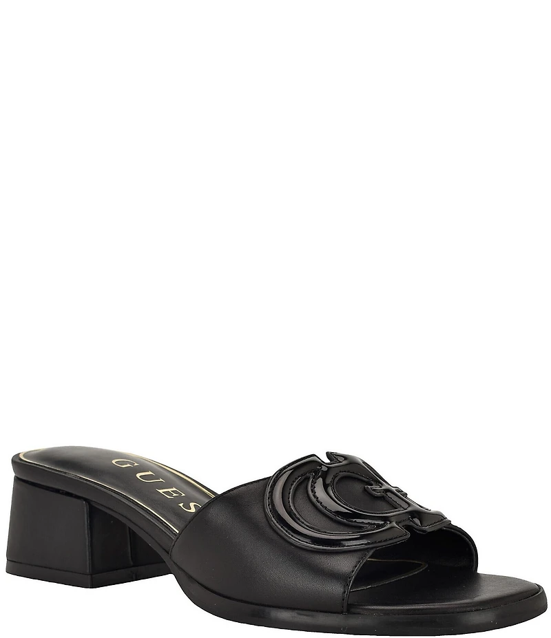 Guess Cerinna Leather Patent Logo Block Heel Slide Sandals
