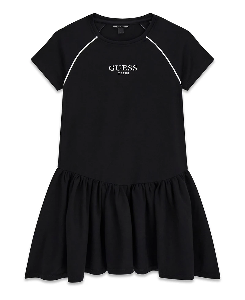 Enjoy comfortable style in this short sleeve dress from Guess, featuring a full needle embroidered logo and piping detail at the sleeves. The stretch construction allows for easy movement and a flattering fit.