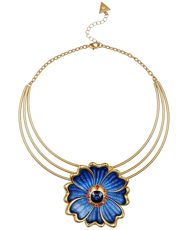 Guess Glass Stone and Rhinestone Gold-Tone Floral Statement Necklace
