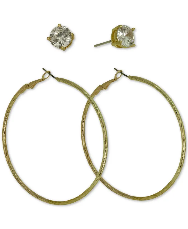 Guess Gold-Tone 2-Pc. Set Cubic Zirconia Stud & Hoop Earrings