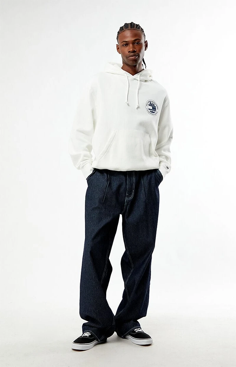 The Dark Blue Pinstripe Baggy Jeans from Guess Jeans delivers bold style with a cool design. Featuring a striking pinstripe print, and a dark blue wash, these jeans are crafted from rigid fabric with a baggy fit from the thigh through the knee and wide legs for a relaxed, statement-making look.