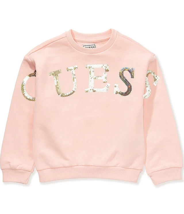 Guess Little Girls Long-Sleeve Sequin-Embellished-Logo-Detailed French Terry Sweatshirt