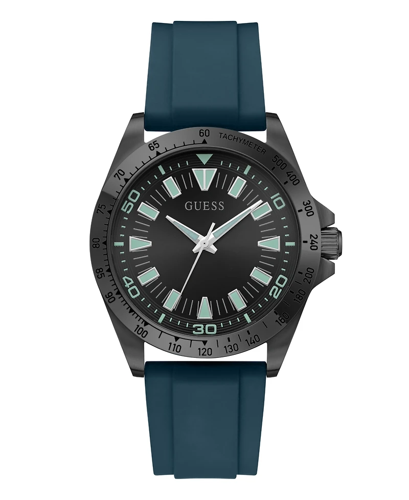 Guess Men's Black Stainles Steel Teal Silicone Analog Watch, 42mm