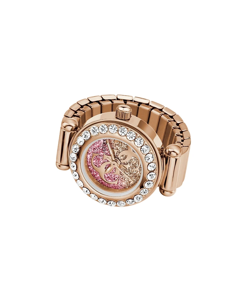 Guess Women's Glitz Rose Gold-Tone Stainless Steel Analog Ring Watch