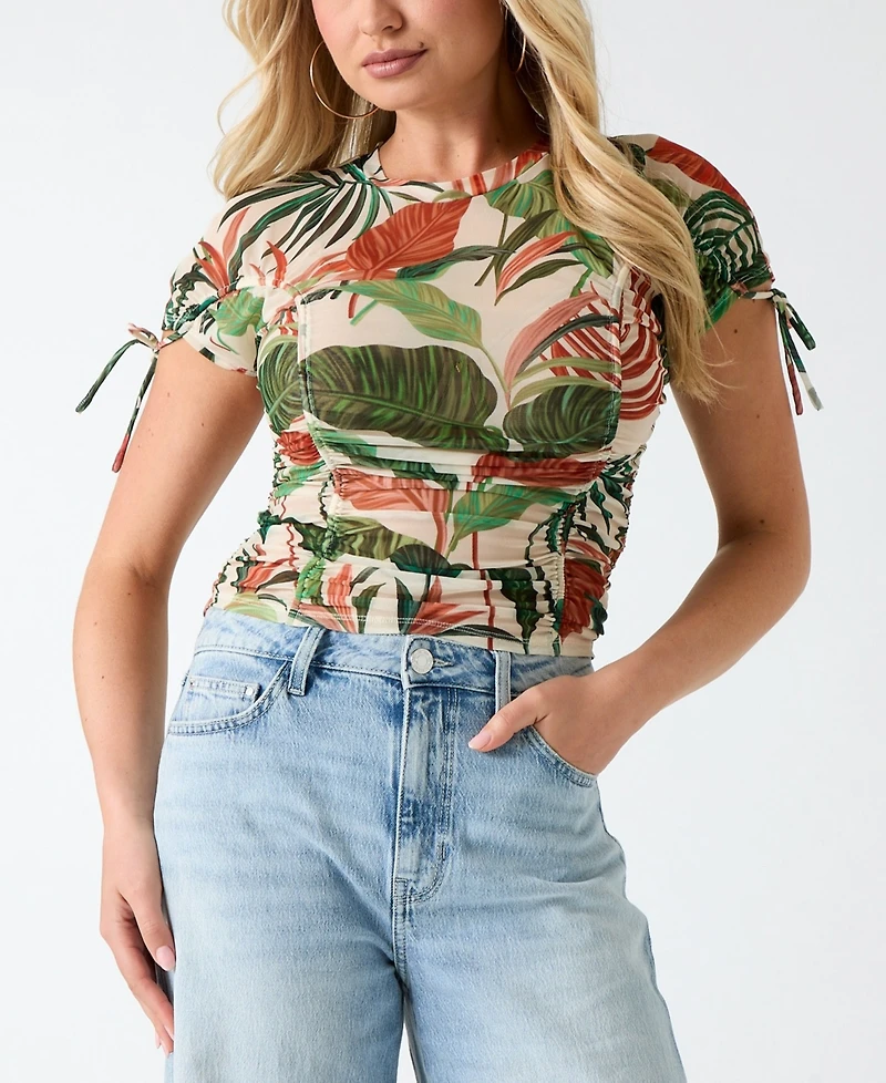Brighten your look and let those tropical vibes flow in this fun printed top from Guess.