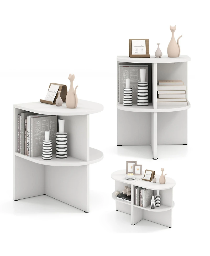 Gymax 2PCS Half Round Side Table 2-tier Wooden Nightstand with Open Storage Shelves