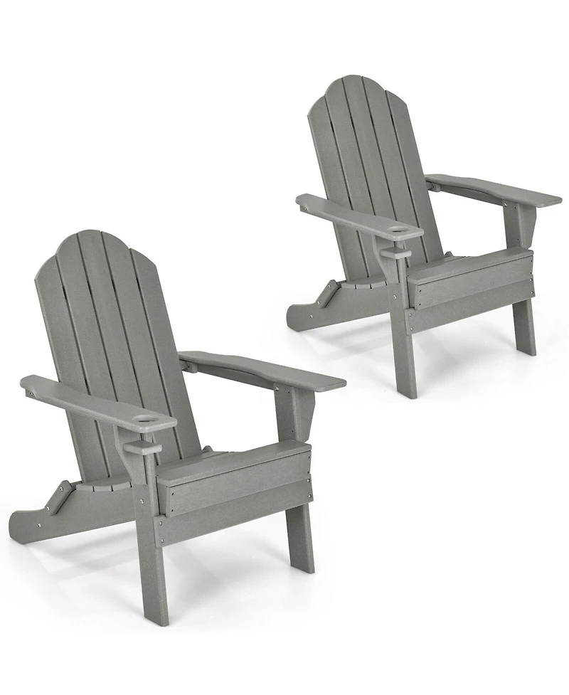 Gymax 2PCS Patio Folding Adirondack Chair Weather Resistant Cup Holder Yard