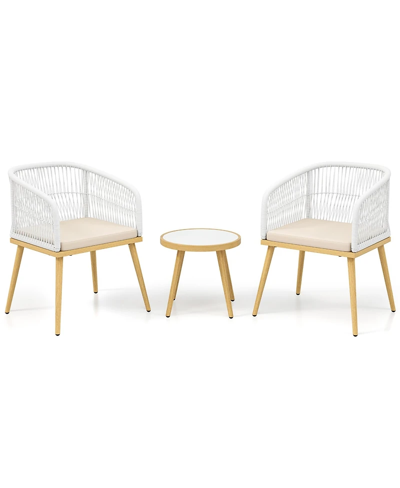 Gymax 3 Pieces Patio Bistro Set Outdoor Pe Wicker Conversation Furniture Set