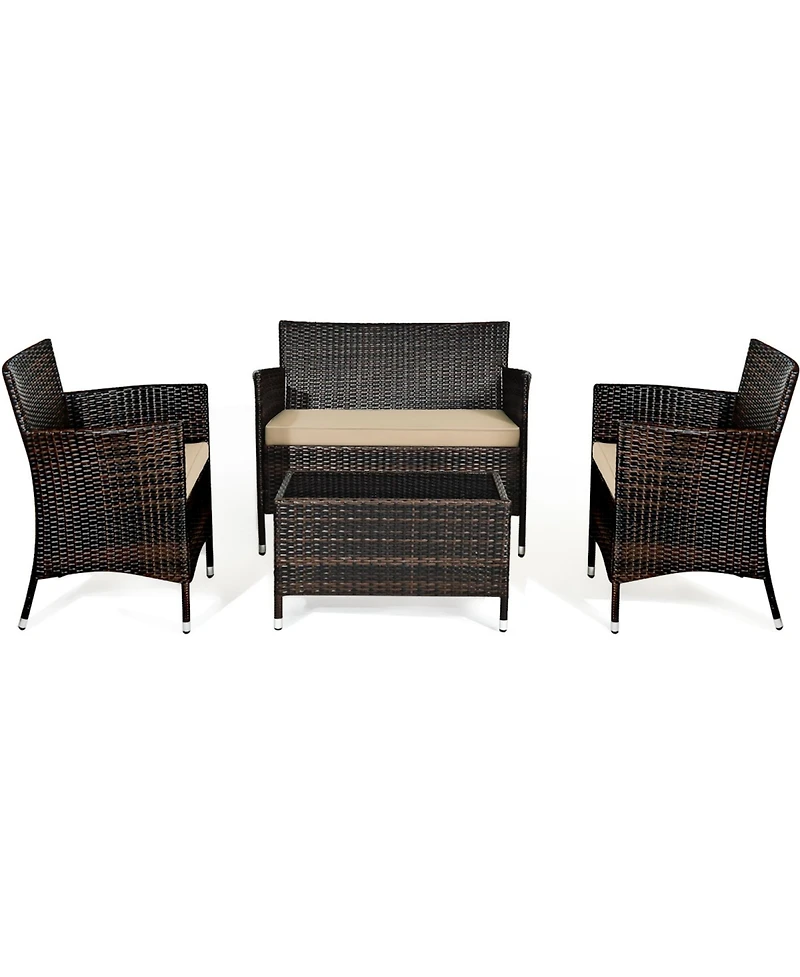Gymax 4PCS Patio Rattan Conversation Furniture Set Outdoor w/ Cushion