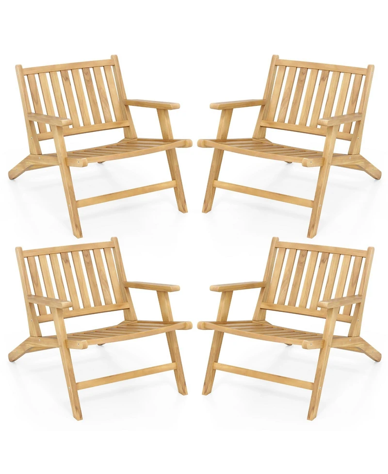 Gymax 4PCS Teak Wood Outdoor Reclining Chair w/ Comfortable Backrest and Armrests