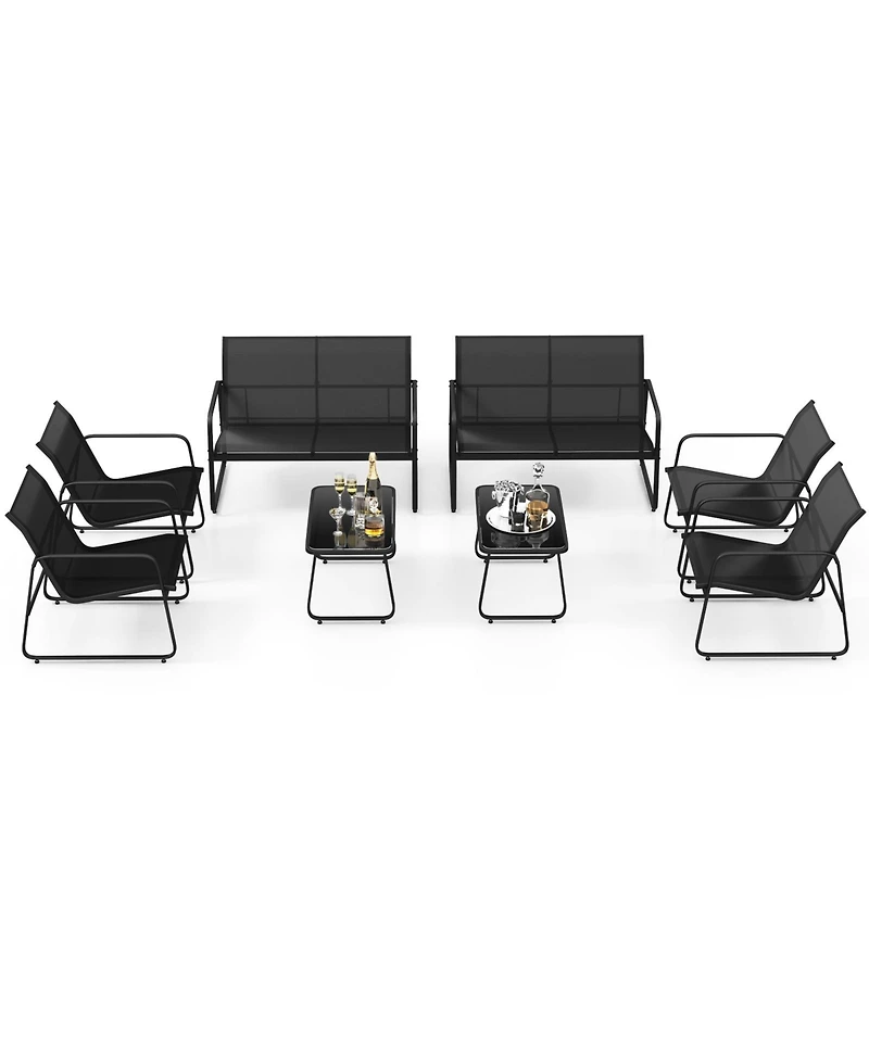 Gymax 8 Pcs Outdoor Furniture Set w/ Tempered Glass & Coffee Table Chair Loveseat Patio