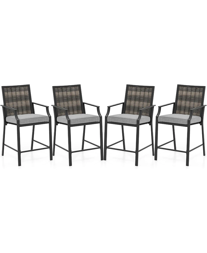 Gymax Patio Bar Stools Set of 4 w/ Armrest Fabric Seat and Heavy-Duty Metal Frame