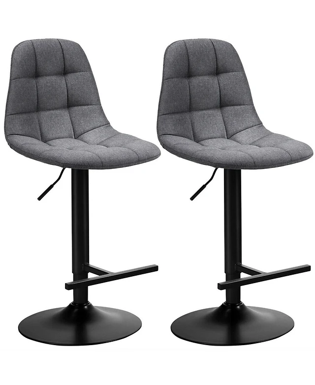 Gymax Set of 2 Adjustable Bar Stools Swivel Counter Height Linen Chairs with Back