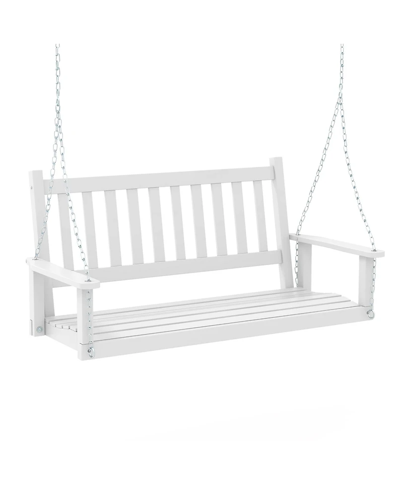 Indulge in ultimate relaxation with our 2-person outdoor wooden porch swing!This 4FT porch hanging swing is made of natural and solid poplar wood with Pu finish, which is suitable for outdoor use. Moreover, the swing bench comes with galvanized metal chains, solid hooks and sturdy eyebolts for easy setup. And the hanging chains are adjustable to suit your various needs. You are able to place it on the tree, stand, ceiling, etc. Additionally, the hanging swing chair supports 2 people up to 500 Lbs. Thanks to the spacious sitting area, slatted backrest and smooth armrests, the 2-person porch swing allows you to sit comfortably. Furthermore, installation is a breeze with an easy-to-follow user's manual.Features:Natural and Sturdy poplar wood with Pu finish for long-lasting useRustproof and adjustable galvanized metal chains for various needsHeavy-duty construction for a load bearing up to 500 Lbs