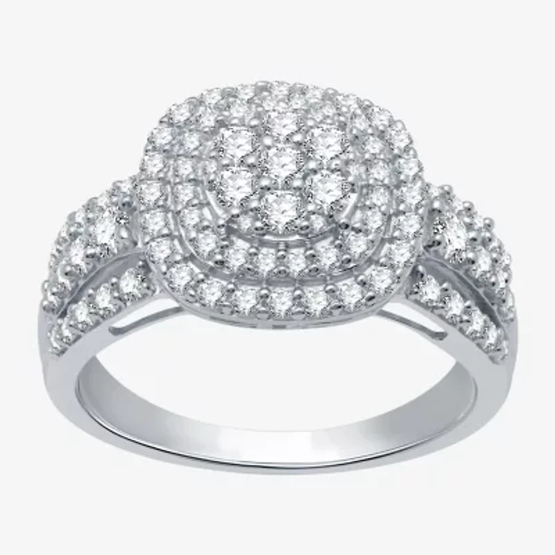 Add drama and dazzle to any look with this sparkling 1 ct. t.w. fashion ring by Ever Star™. Set in 10K white gold, a center cluster of of brilliant-cut lab grown diamonds are encircled with a fiery double halo and mounting graced with more lab grown diamonds. Ever Star Lab Grown Diamonds™ have the same physical, chemical and optical properties as mined diamonds. Certified for 4C’s.