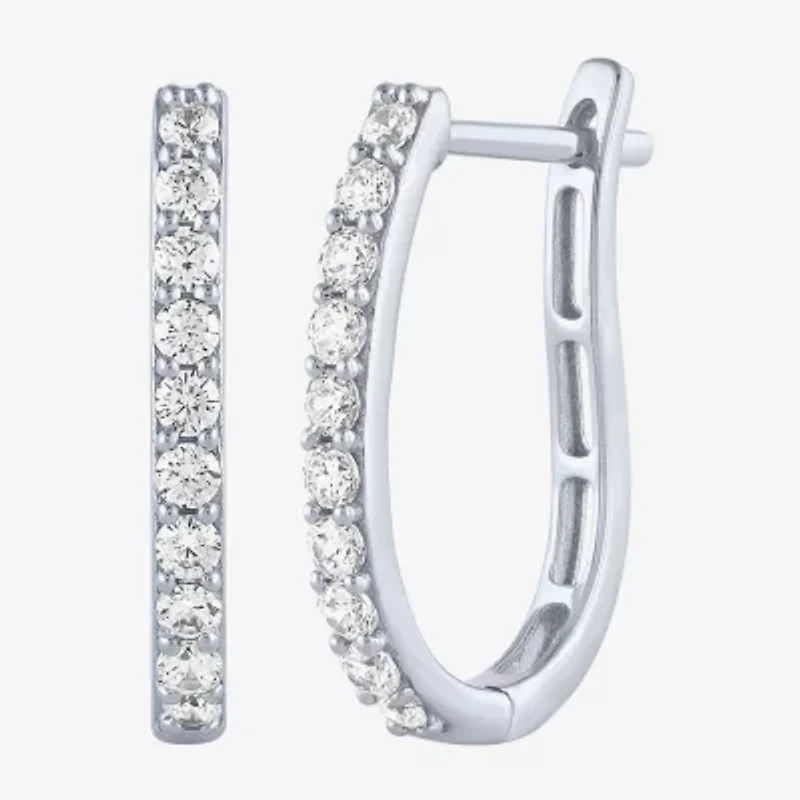 (H-I / I1) Womens 1/2 CT. T.W. Lab Grown White Diamond 10K Gold 18mm Hoop Earrings