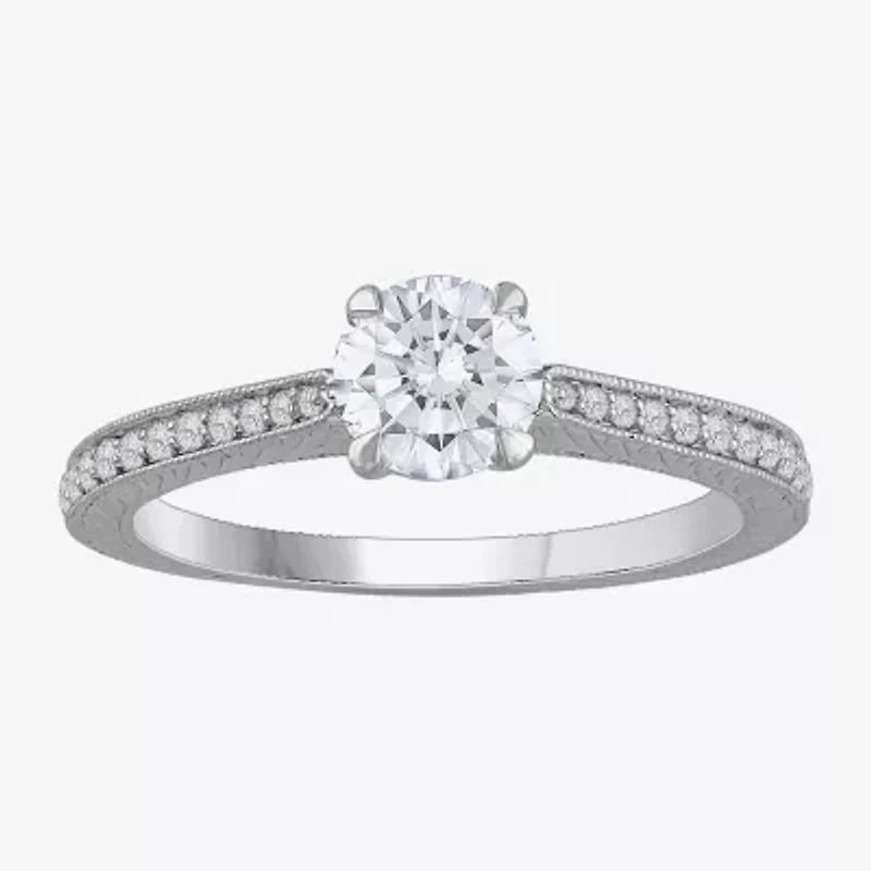 (H-I / Si1) Womens 1 1/4 CT. T.W. Lab Grown White Diamond 14K Gold Round Side Stone Engagement Ring