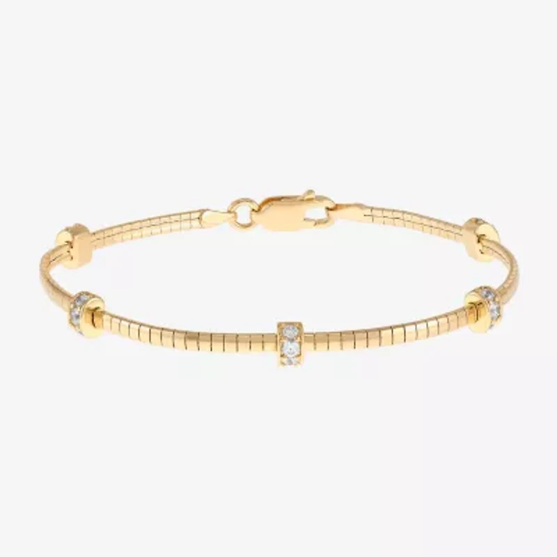 (H-I / Si2) Womens 14K Gold Over Silver 7 Inch Solid Omega Chain Bracelet