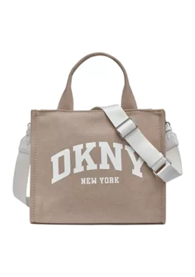 Boasting a bold DKNY logo graphic, this medium tote is made from easy cotton. Adjustable strap with 25" drop Imported Material & Care Cotton Clean with a soft cloth