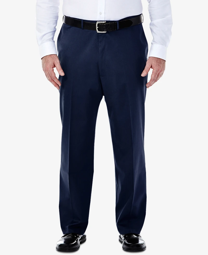 Offering a non-iron design and a comfortable classic fit, these Haggar premium stretch flat-front pants are a smart choice for out-of-town meetings and long days at the office.