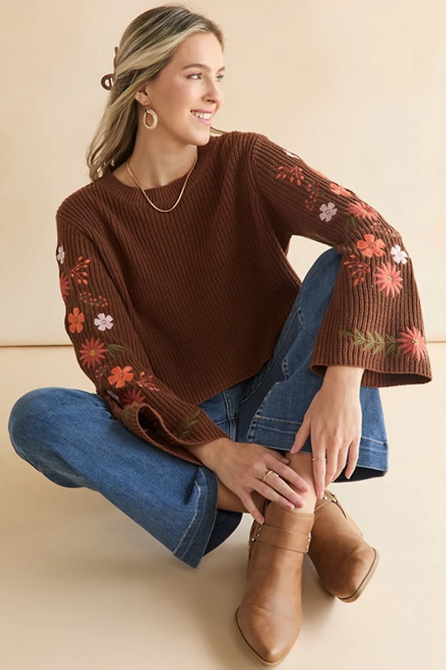 Kadyluxe Women's Texas Orange Texas Longhorns Love Note Embroidered Pullover Sweater