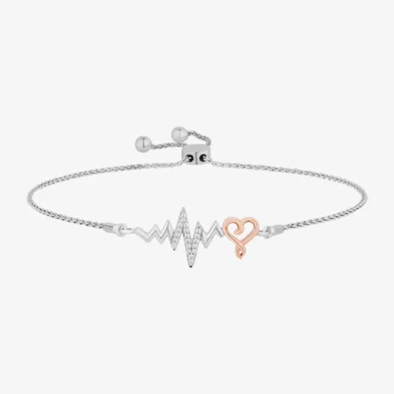 Hallmark Diamonds (I, I2) Womens 1/10 CT. T.W. Lab Grown White Diamond 14K Rose Gold Over Silver Sterling Silver Heart Bolo Bracelet