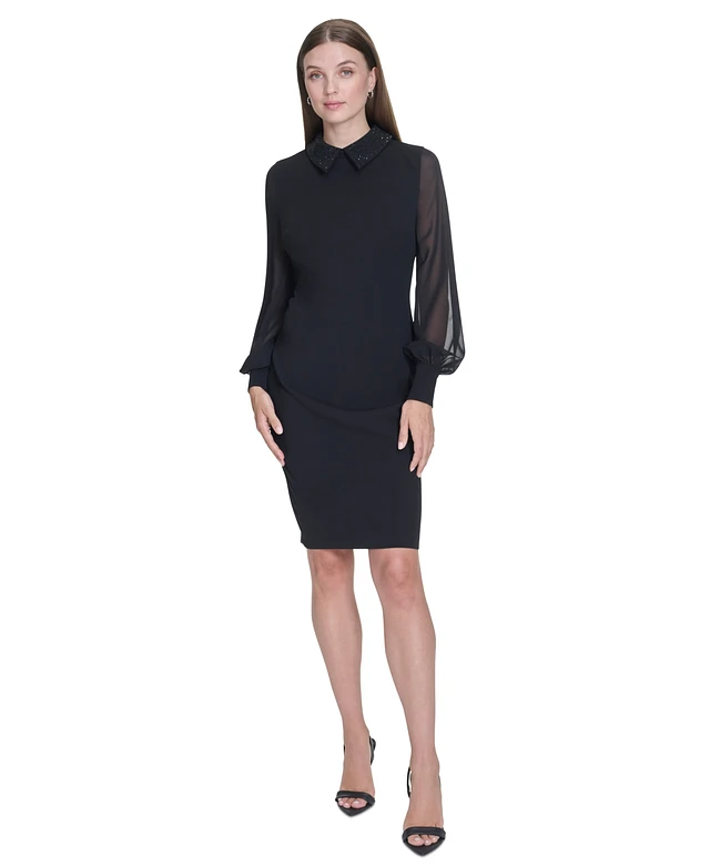 Halston Women's Rhinestone-Collar Sheath Dress