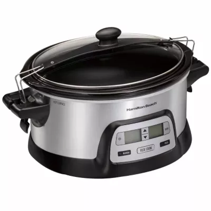 Finally, a slow cooker that lets you program timing and heat setting to fit your schedule and your cooking style. With the FlexCook Slow Cooker from Hamilton Beach, you can program two different heat settings and time durations in one cooking cycle, giving you greater flexibility in cooking your favorite recipes. For example, you can cook on high three hours, then low for six hours, or cook on low for four hours, then high for two.