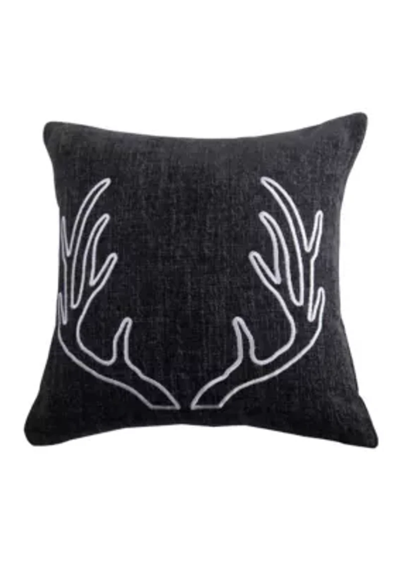 Hamilton Gray Chenille Embroidered White Antler PillowHamilton Gray Chenille Embroidered White Antler Pillow