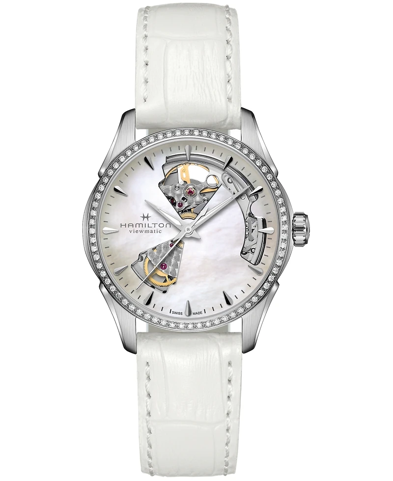 Hamilton Women's Swiss Automatic Jazzmaster Open Heart Diamond 1/3 ct. t.w. White Leather Strap Watch 36mmHamilton Women's Swiss Automatic Jazzmaster Open Heart Diamond 1/3 ct. t.w. White Leather Strap Watch 36mmHamilton Women's Swiss Automatic Jazzmaster Open Heart Diamond 1/3 ct. t.w. White Leather Strap Watch 36mmHamilton Women's Swiss Automatic Jazzmaster Open Heart Diamond 1/3 ct. t.w. White Leather Strap Watch 36mm