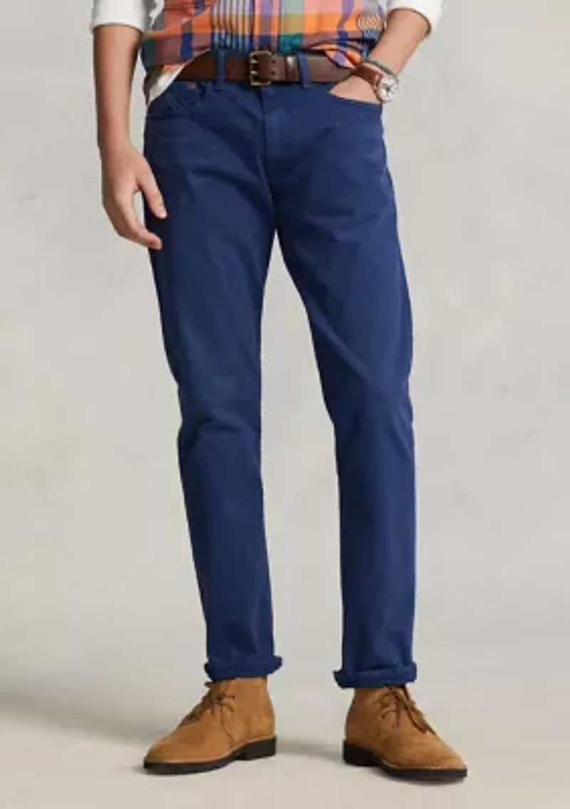 Cut with extra room in the thigh and a straight leg, Polo's most relaxed fit offers an easy silhouette without excess fabric and works for all body types. This version is crafted with a hint of stretch for all-day comfort. The Hampton Relaxed Straight: Polo Ralph Lauren's most classic-fitting jean sits slightly below the waist with a relaxed rise, an easy fit through the seat and the thigh, and a full straight leg. Size 32W has a 9" rise and a 16" leg opening. Belt loops. Zip fly with a signature buttoned closure. Five-pocket styling with signature metal rivets. Woven "Polo" label at the coin pocket. Leather "Polo Ralph Lauren" patch at the back right waist. Due to the natural characteristics of this material, the coloring may rub off onto fabrics and upholstery. Model is 6'1" (185 cm) and wears a size 32W x 32L. Imported Material & Care Cotton, elastane Machine washable