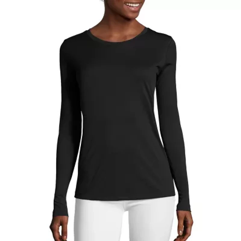 Workout comfortably in this women's crew neck Hanes long-sleeve performance t-shirt made with their Cool-DRI� technology. It's made from lightweight, breathable jersey fabric with moisture-wicking properties and UV-protection to keep you safe from the sun's rays. Pair it with workout shorts or leggings to get in the active state-of-mind.