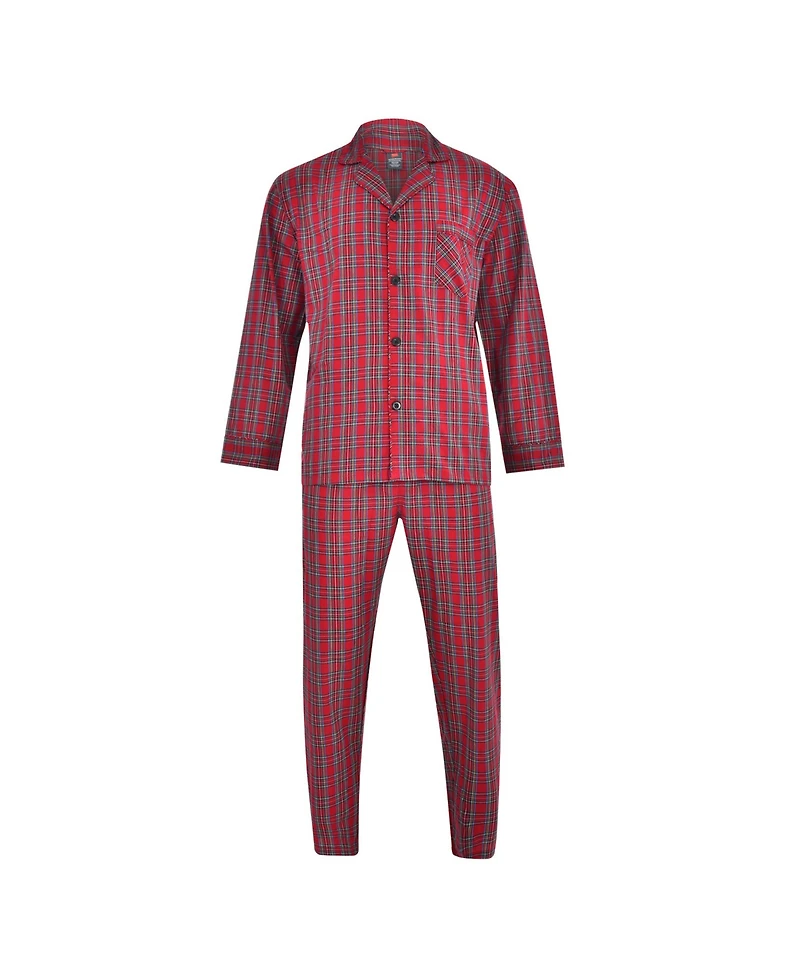 This Hanes Big and Tall Classic Pajama set is a nighttime necessity. Made with a soft cotton or polyester broadcloth, This set includes a comfortable long-sleeve top with a 4 button front closure and a front chest pocket. The stretchy elastic waistband and the 2-button snap adjustable.