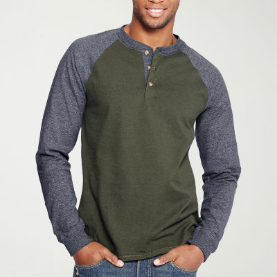 Hanes Mens Heavyweight Beefy Long Sleeve Colorblock Raglan Henley