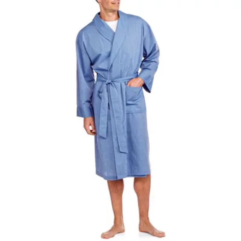 Hanes Woven Shawl Robe. Superior comfort and durability Made with high quality blend of 60% cotton and 40% polyester. Convenient tie closure and kimono style sleeves. Perfect choice to complete your loungewear collection.
