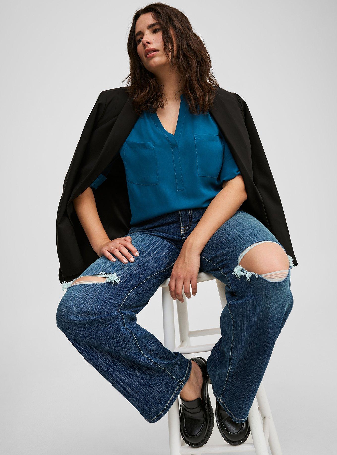 FIT Flowy silhouette. Measures 30"" from shoulder (size 2). MATERIALS + CARE Georgette woven fabric: Long-lasting, breathable, slightly sheer and super low-maintenance--what more could you ask for in a fabric? Stretch level: Minimum. 100% polyester. Machine wash cold. Dry low. Imported. DETAILS Split collared neckline with button placket. 3/4 roll tab sleeves. Two chest pockets. Shirttail hem. WHY WE LOVE IT Versatile and comfortable, this flattering pullover is easy to dress up or down for your comfiest and most elevated days.