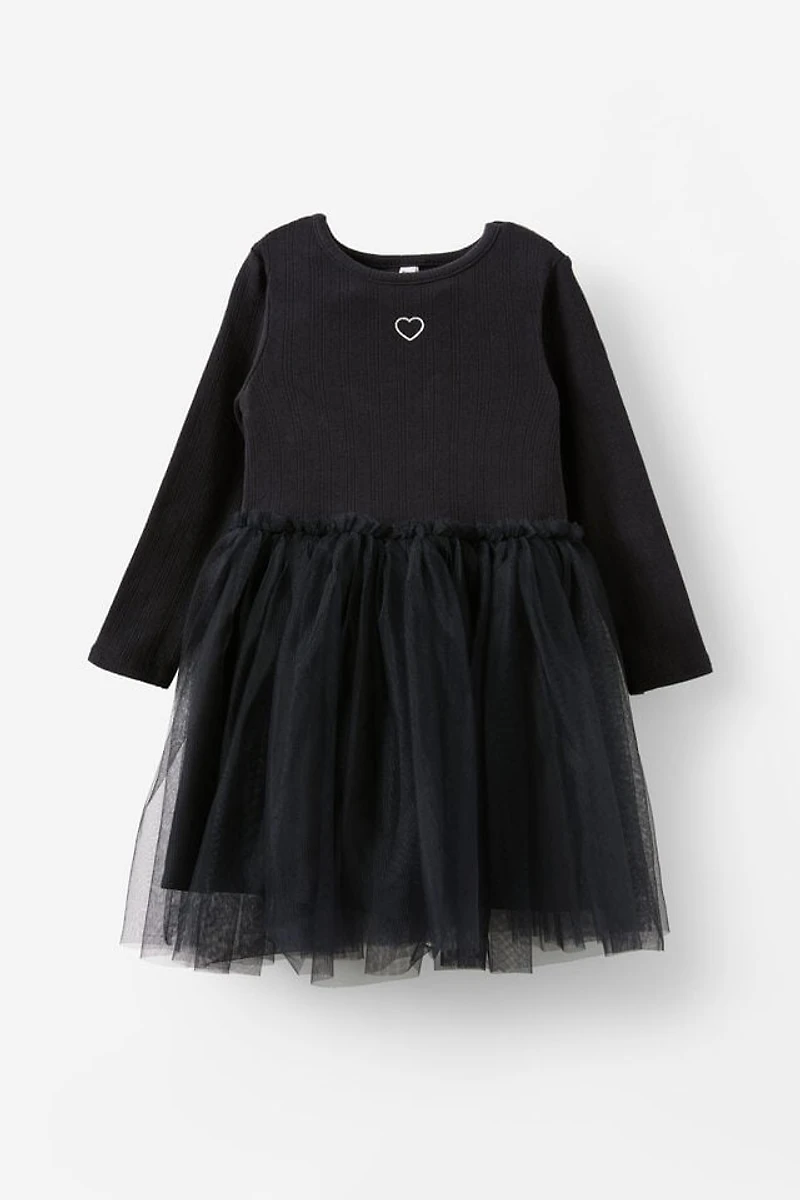 Made for movement, styled for fun. The Harper Long Sleeve Dress Up Dress brings party-ready style with a cool cotton feel. A knit bodice with pretty embellishment detailing meets a tulle skirt for that dress-up magic they'll love. The fit-and-flare shape and relaxed fit keep them comfy while they're playing. Pair it with tights and their favourite shoes for any celebration.