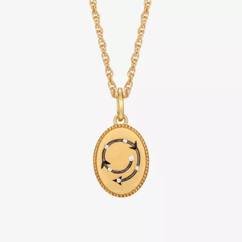 Inspired by the Patronus Charm, the Expecto Patronum pendant captures the protective force of positivity and light. 14K yellow gold-plated sterling silver brings a warm textured feel to the design. Diamonds accent the spiral wand motion iconic to the spell.