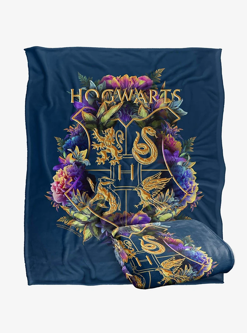 Harry Potter Hogwarts Floral Crest 50x60" Throw Blanket