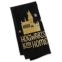 Proclaim your wizard or witch tendencies and your affinity for the Wizarding World with this charming tea towel. The black cotton dish towel features a silhouette of Hogwarts castle and quote in metallic gold embroidery. A must have for every Harry Potter fan's kitchen.