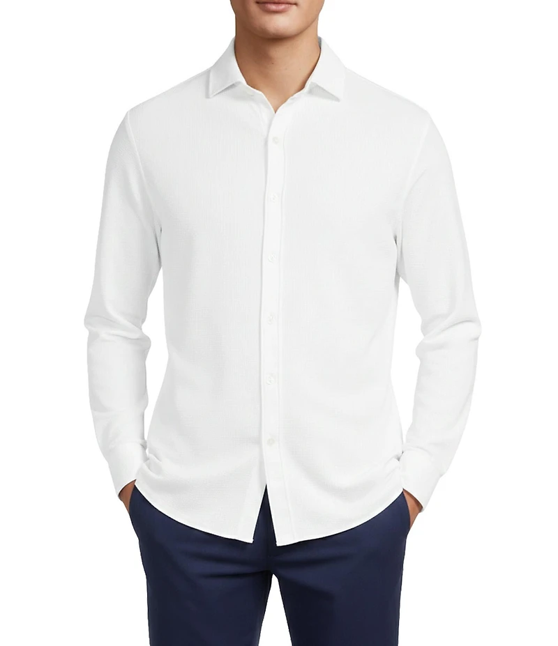 Hart Schaffner Marx Luxury Performance Long Sleeve Textured Coat Front Sport Shirt
