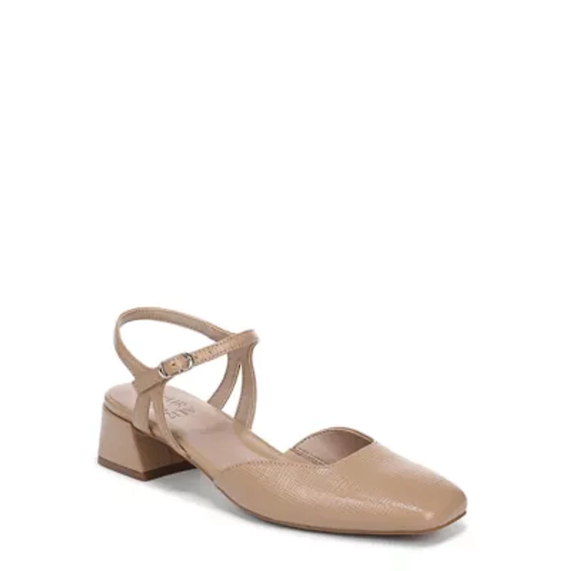 From boardroom to best-dressed. These modern pumps are designed with innovative comfort for any occasion. Strappy dress pump with cutouts and square vamp. Faux leather or fabric upper square toe. Adjustable buckle closure. REZORB™ responsive cushioning for shock absorption + impact protection for sneaker-level comfort. Partially bio-based footbeds: Crafted with soft and lightweight cushioning, built-in arch support, and a molded heel cup. Contour+ Comfort technology for a premium fit and true, all-day comfort experience. 1.63 inch angled block heel. Consciously packaged: Our shoe boxes are 100% Forestry Stewardship Council mix certified. Linings and insole crafted from partially recycled materials. WHY YOU’LL LOVE IT: Forever elegant silhouettes with all day wearability, available in an inclusive range of sizes and widths. Designed to the contours of a woman’s foot. The Beautiful Fit. Since 1927. Buckle closure Vietnam Imported Product Specifications 1.625 in. W Material SYNTHETIC, TPR, Polyurethane polyurethane