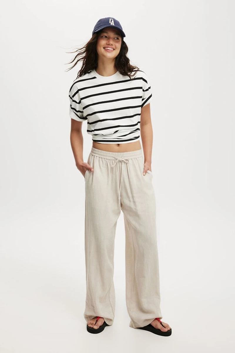 Designed with a relaxed wide-leg silhouette and soft drape through the leg. The elasticated waist adds comfort, while the lightweight linen-viscose blend brings a breezy, elevated feel.